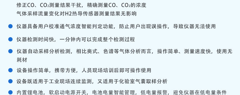CO/CO2/H2/O2/CH4/CnHm:NDIR; H2:MEMS;O2: ECD |
