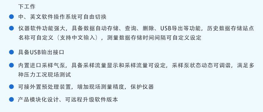 CO/CO2/H2/O2/CH4:0-100%;CnHm:0-10%; O2:0-25% |