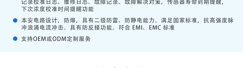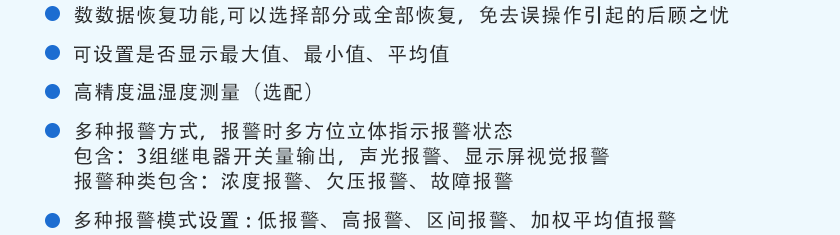 CO(0.1ppm)、H2S(0.01ppm)、O2(0.01%Vol)、Ex(0.1%LEL), 更高分辨率可訂制 |