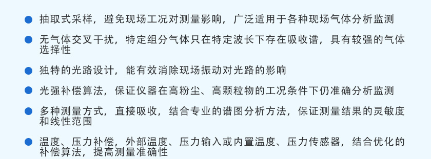 用國際先進(jìn)的TDLAS激光技術(shù),主要用于測量各種氣體中的HF、HCL、O2、CO、CO2、H2O、O2、NH3、CH4?等氣體體積濃度及熱值。