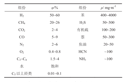 焦爐煤氣由于含有多種雜質組分,除了有大量的CH4和一定量的N2、O2、CO、CO2、飽和烴和不飽和烴外,還有少量的C5以上飽和烴、焦油、苯等。