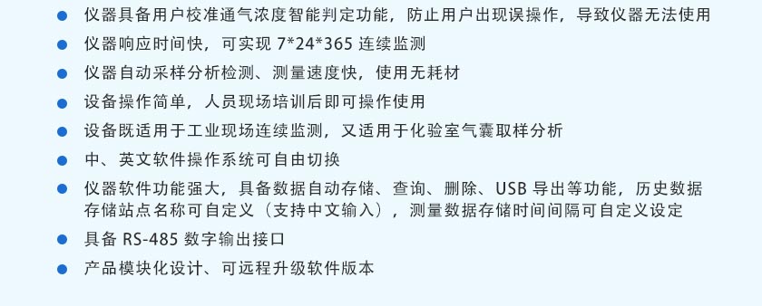 (12)設備既適用于工業現場連續監測,又適用于化驗室氣囊取樣分析。